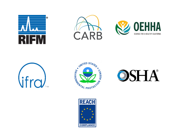 تفخر سنت ماركيتنج بتلبية المعايير التنظيمية وفي كثير من الأحيان تجاوزها. لضمان امتثالنا دائمًا ، يراقب فريق تنظيم العطور الداخلي لدينا مباشرةً سلامة كل عطر. يضمنون أن جميع وثائق السلامة المناسبة قيد المراجعة والمحافظة عليها في جميع الأوقات. كما أنهم يدعمون خدمة العملاء بشكل مباشر لجميع الاستفسارات حول السلامة. يتيح ذلك لعملاء سنت ماركيتنج الوصول بسهولة إلى صحائف بيانات السلامةSDS)) أو غيرها من وثائق السلامة عند الطلب.